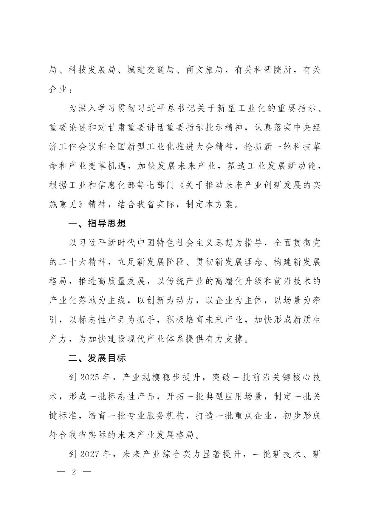 关于印发甘肃省推动未来产业创新发展行动方案的通知