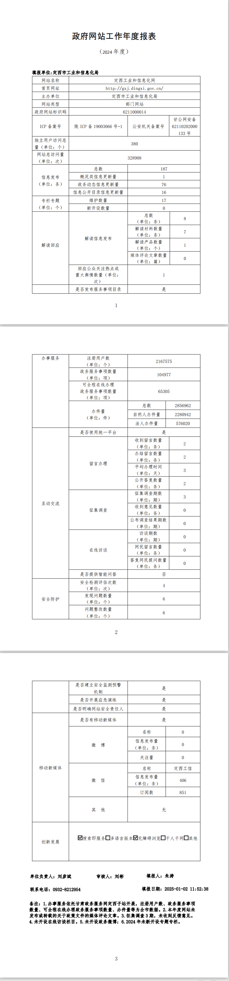 定西工业和信息化网2024年政府网站工作年度报表