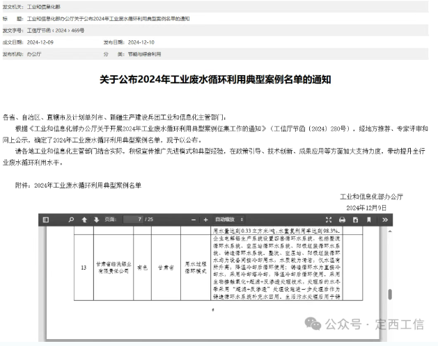 定西市工信局聚焦工业领域资源消耗高、污染排放量大等问题,聚焦传统企业用水效率低、废水处理成本高等痛点,全面提升工业污水循环利用水平,重点实施污水“零”排放工程,着力破解生态环境约束与工业发展间的矛盾。